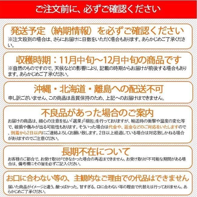 | ■不良品について | お届けの商品は、細心の注意を払い「選果」「梱包」を行っておりますが、輸送時の衝撃や温度の変化等で、破損や傷みが出る可能性もあります。その場合はご対応いたしますので、到着から2日以内にご連絡お願い致します。2日以上経過している場合は対応致しかねる場合がありますのでご注意ください。