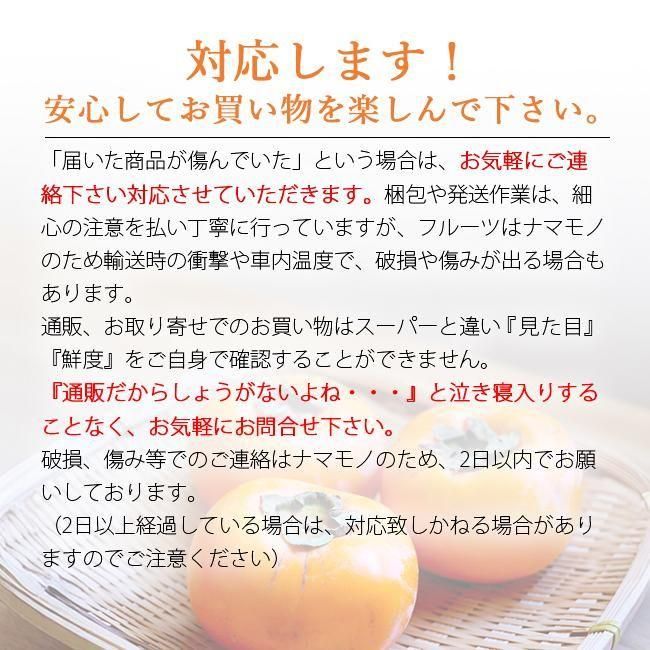 ■不良品について | お届けの商品は、細心の注意を払い「選果」「梱包」を行っておりますが、輸送時の衝撃や温度の変化等で、破損や傷みが出る可能性もあります。本商品は若干多めに入れておりますが、それでも「傷みが多すぎる」「破損している」といった場合はご対応いたしますので、到着から2日以内にご連絡お願い致します。2日以上経過している場合は対応致しかねる場合がありますのでご注意ください。