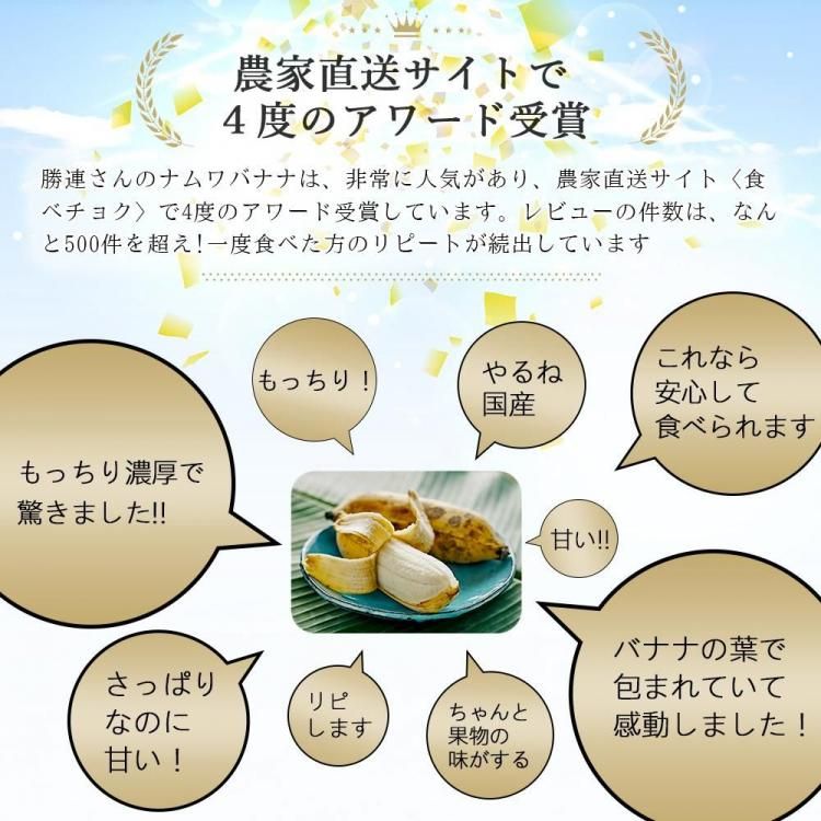 | ■サイズ | 不選別(おまかせ)※1月〜2月のバナナは生育が悪く、サイズが小さくなります。ご理解ご了承お願い致します。 |